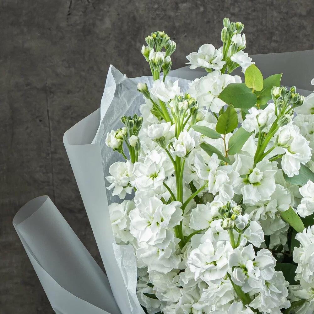 Маттиола – 11 шт.Эвкалипт – 1 шт.Подарочная упаковка – 1 шт.Средство продления жизни цветка – 1 шт.