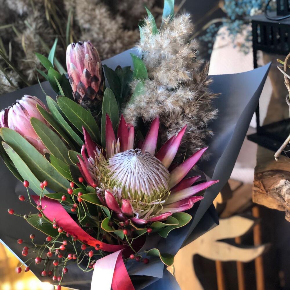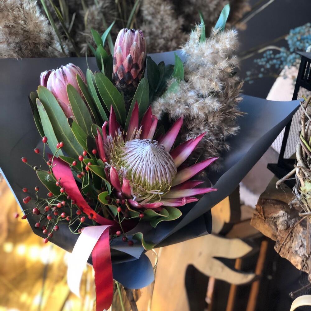 Протея королевская – 3 шт.Шиповник – 1 шт.камыш – 1 шт.