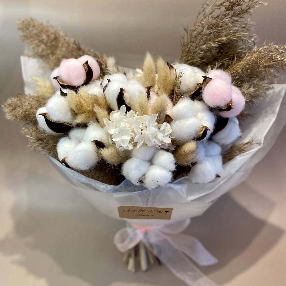Хлопок – 13 шт.пампасная трава – 4 шт.гортензия стабилизированная – 1 шт.