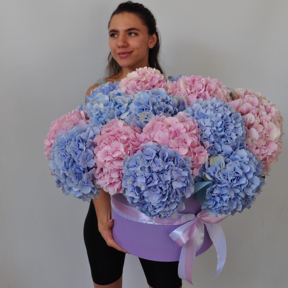 Гортензия, 21 штучка. Большой букет в коробке