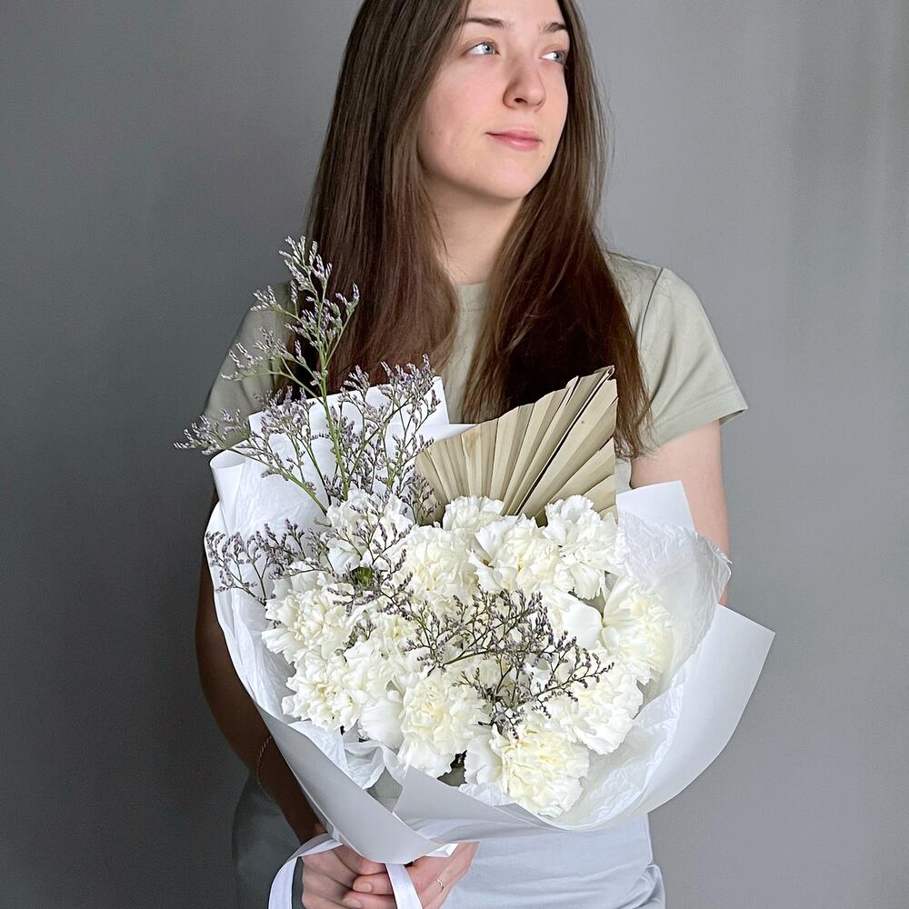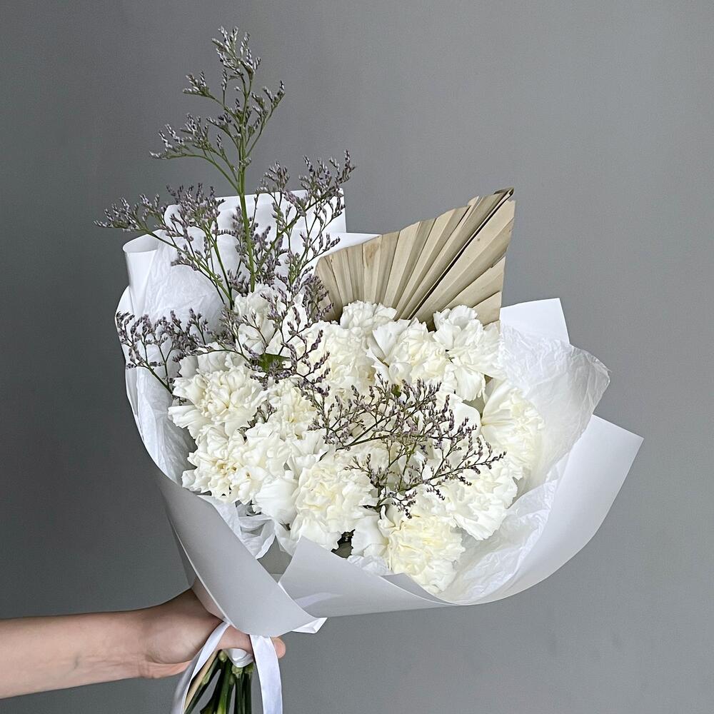 Гвоздика – 15 шт.Лимониум – 1 шт.пальма пика – 1 шт.