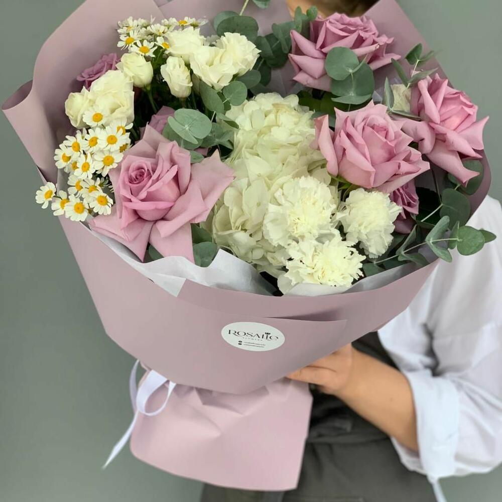 Гвоздики, Кустовые розы, Пионовидные розы, Розы