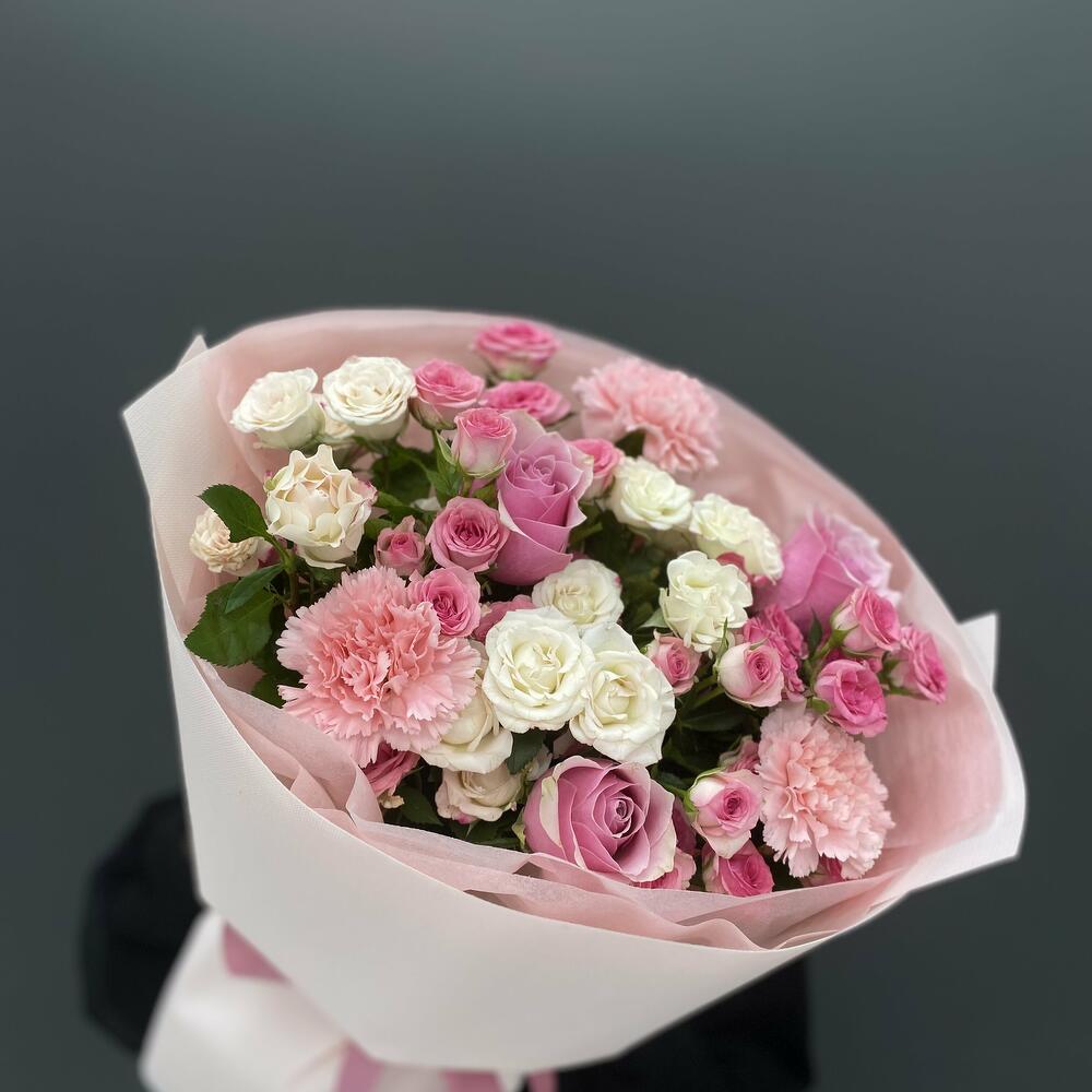 Гвоздики, Кустовые розы, Лизиантусы, Пионовидные розы, Розы