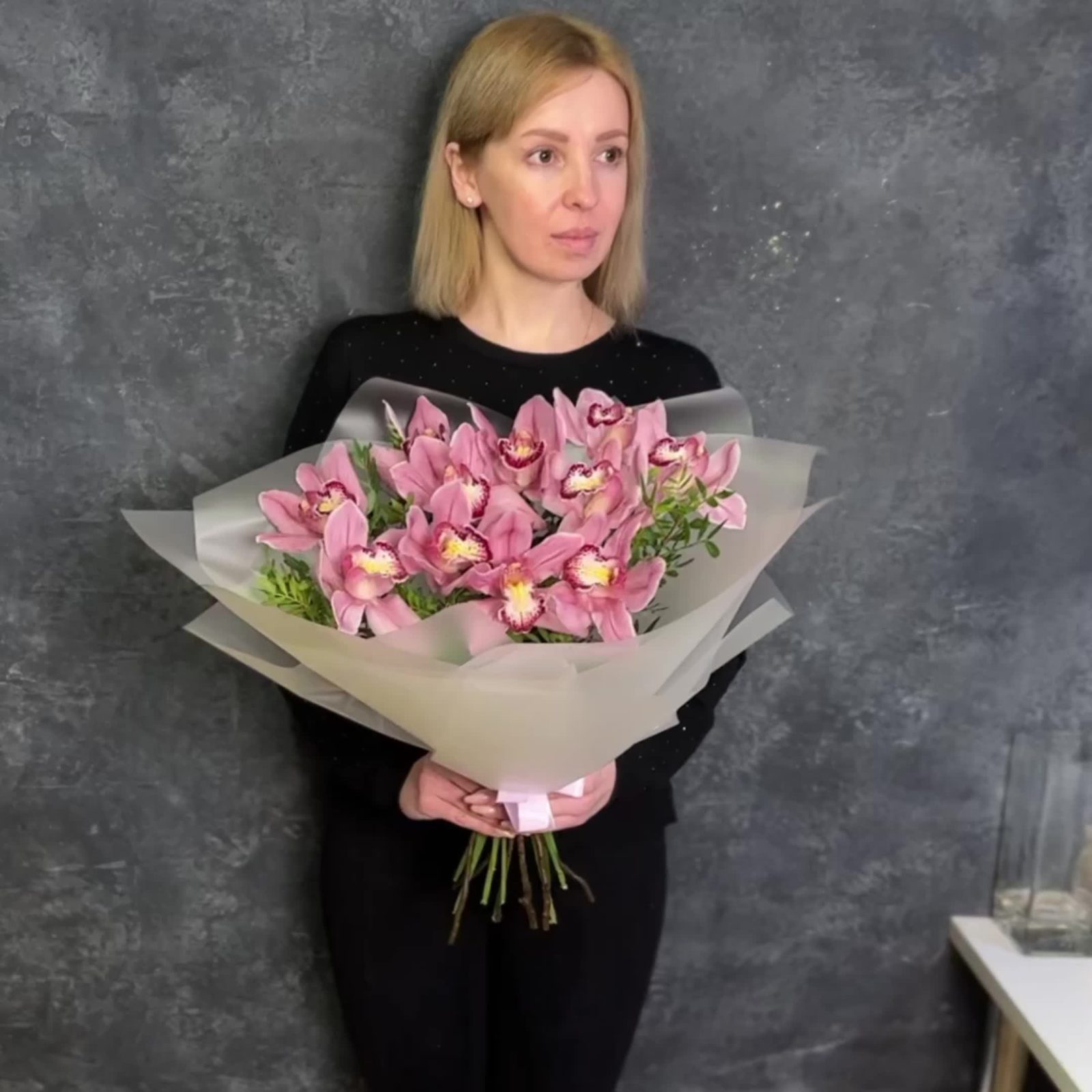 орхидея – 11 шт.Писташ – 5 шт.Стильная упаковка – 1 шт.Лента атласная – 1 шт.