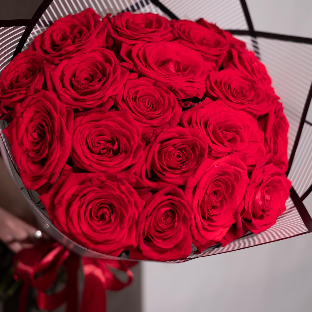Букет из 19 красных роз. Букет 115 ALMOND ROSES