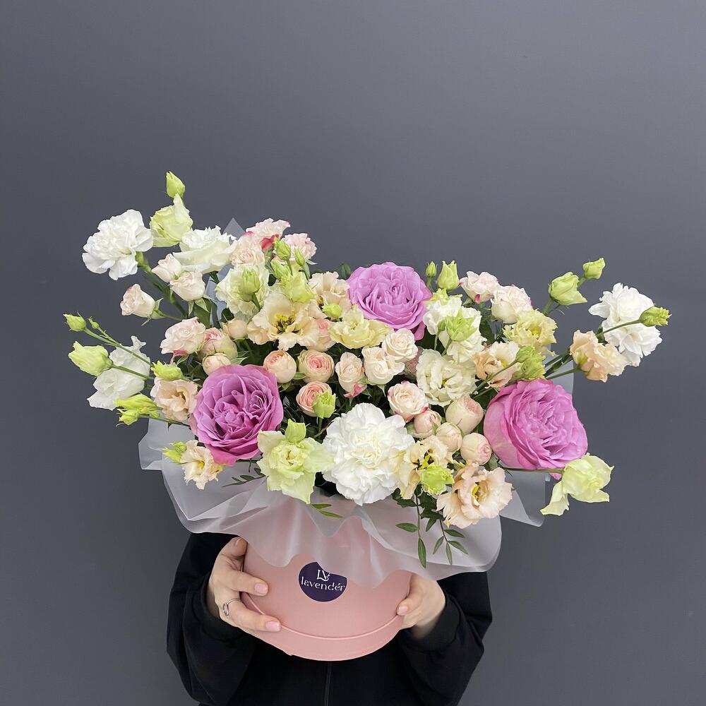 Гвоздики, Лизиантусы, Розы, Тюльпаны