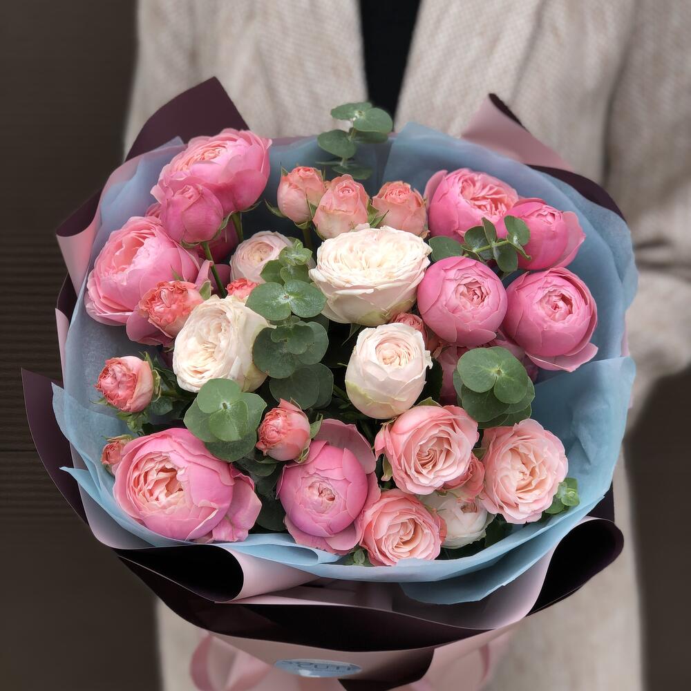 Гвоздики, Кустовые розы, Пионовидные розы, Розы
