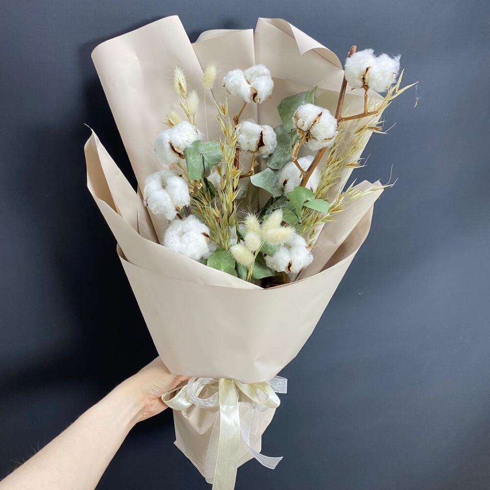 Букет из сухоцветов с хлопком, эвкалиптом, лагурусом
